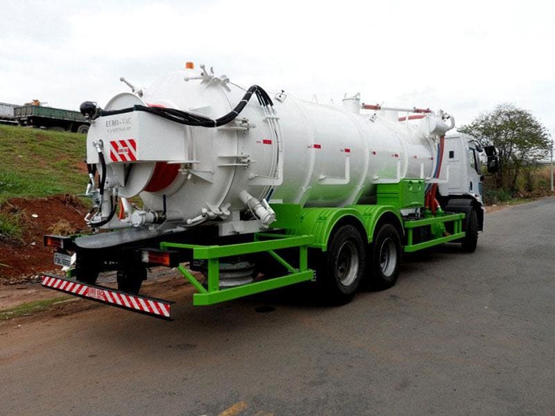 Seu sistema de vácuo é constituído de uma bomba de vácuo anel líquido, preparada para sugar os mais variados tipos de resíduos líquidos, em profundidades de até 10 metros, e a uma distância de até 100 metros do equipamento.