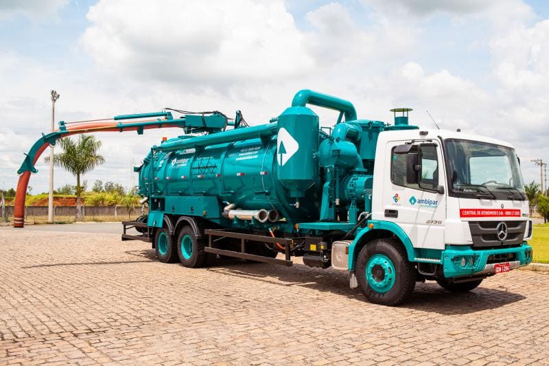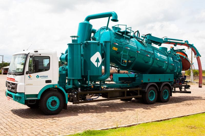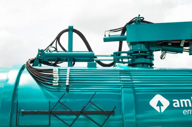 Tanque munido de sistema hidráulico para efetuar o basculamento do tanque por meio de pistão telescópico de triplo estágio, realizando uma inclinação de até 40º em relação ao chassi. O que promove uma grande facilidade no momento de descarregar os resíduos acumulados dentro do Equipamento Roots.